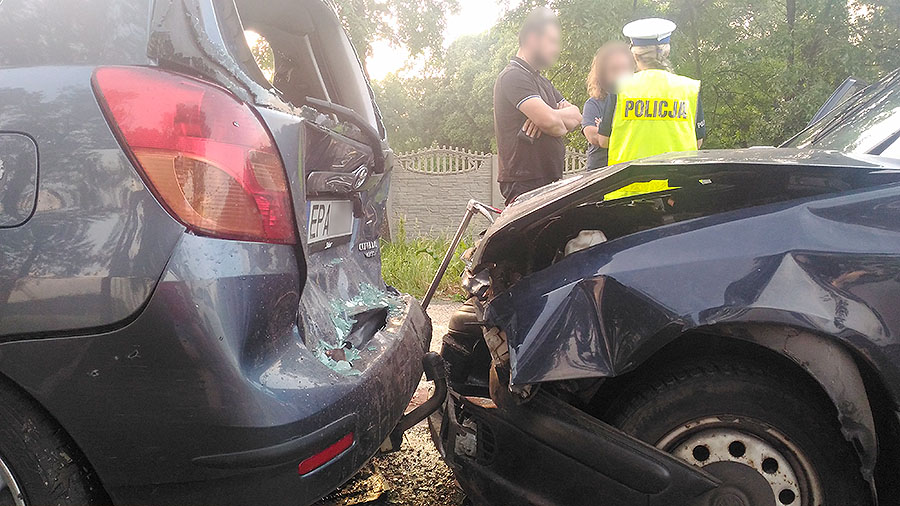 Samochody w czwartek około godz. 20.15 jechały w stronę Łasku. W pewnym momencie 43-letni kierujący zatrzymał się i zaczął manewr cofania. Uderzył w przód Skody kierowanej przez 63-letnią kobietę.