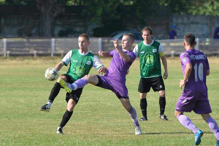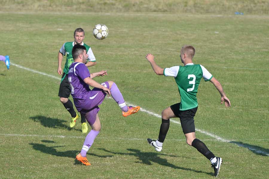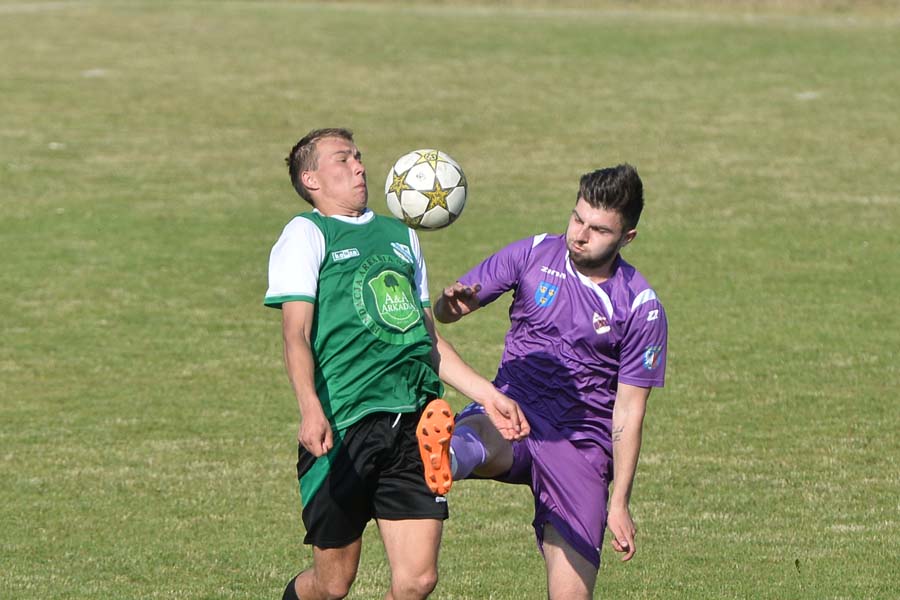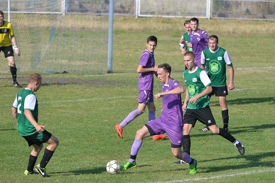 Tuż przed przerwą bramki wyrównującej szukali „fioletowi”. W 43. min Szynka minął Rzeźniczaka, ale po jego strzale z ostrego kąta lewą nogą piłka przeleciała wzdłuż bramki. Minutę później po zamieszaniu w polu karnym do bezpańskiej piłki dopadł Dawid Kaźmierczak i umieścił piłkę w bramce. Już w doliczonym czasie gry indywidualnie przedzierał się natomiast Rafał Cukierski, ale bezskutecznie. Pierwsze 45 minut nie wyłoniło zdecydowanego faworyta derbów Pabianic.