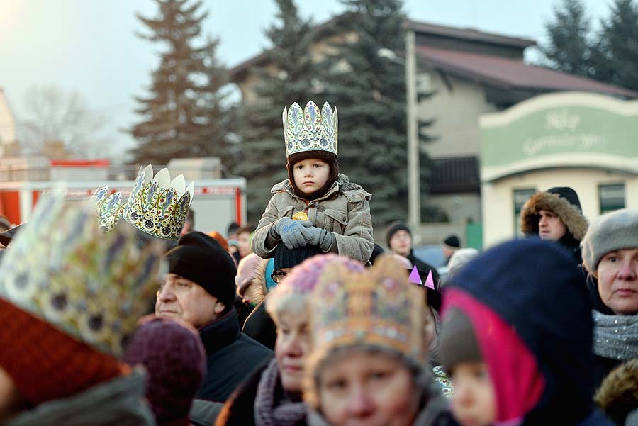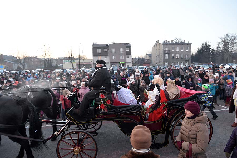 Trzej Królowie spotkali się na rynku przy ulicy Orlej. Ich orszaki wyruszyły z trzech parafii: Najświętszej Marii Panny, Matki Boskiej Nieustającej Pomocy w Woli Zaradzyńskiej oraz Chrystusa Króla. W rolę Kacpra, Melchiora i Baltazara wcielili się nauczyciele ze Szkoły Podstawowej nr 5, którzy tworzą szkolny teatr.