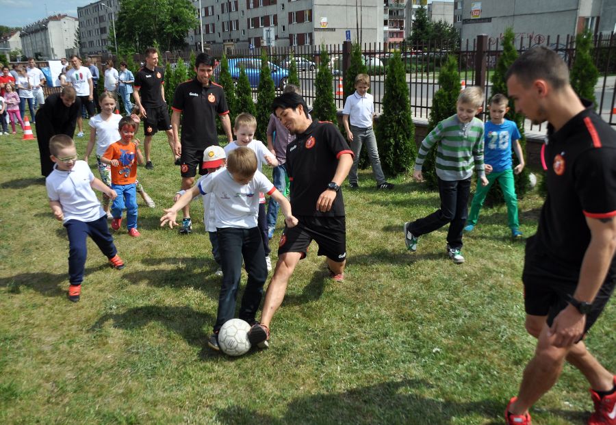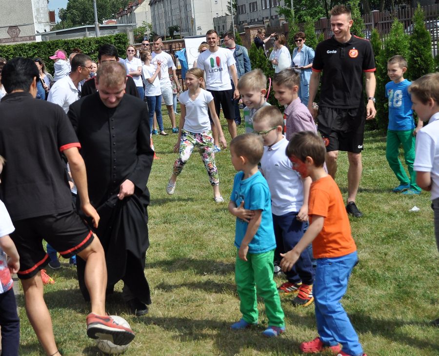 Najwięcej emocji wzbudził jednak punkt festynu nazwany „stadion – zabawy z piłką”. Parafialny trawnik zamienił się bowiem w prawdziwe boisko piłkarskie, na którym toczyły się krótkie, ale zażarte mecze pomiędzy najmłodszymi parafianami, a przybyłymi piłkarzami Widzewa. Na festynie zjawiło się czterech graczy łódzkiej drużyny – pabianiczanin Maksymilian Rozwandowicz, a także Szymon Zgarda i dwóch graczy z Japonii – Kosuke Kimura i Tsubasa Nishi.