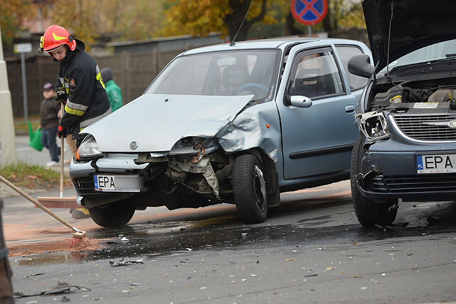 Do wypadku doszło przed godz. 13.00 na skrzyżowaniu ul. Bugaj i Grota Roweckiego. Na miejsce przyjechała policja, straż pożarna i karetka pogotowia. Kierowcę fiata przebadali lekarze. Policja ustala przyczynę wypadku, ale ani kierowca fiata, ani kierująca Chryslerem nie poczuwają się do winy. – Uczestnicy zdarzenia twierdzą, że oboje mieli zielone światło – poinformował policjant z sekcji drogowej.