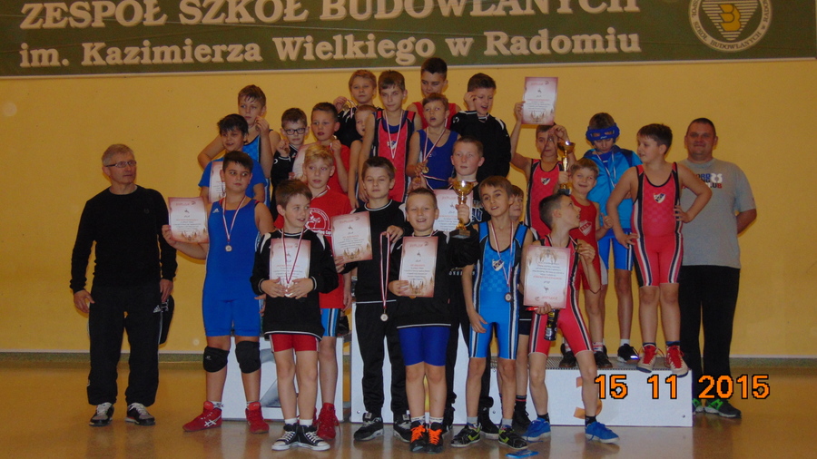 W najmłodszej kategorii dzieci triumfował Mateusz Jarzębski zwyciężając po zaciętej walce przy remisie 2;2 z kolegą klubowym Franiem Grossem. – Bardzo dobrze walczył też Kuba Janicki, wygrywając walki nawet przy stanie 0:7 dla przeciwnika na plecy, który zdobył złoty medal – relacjonuje Waldemar Sawosz. Do tego złoto dołożył też bojowy Kamil Buldecki. Srebrne medale zdobyli: Adam Cichała i Piotr Jarzębski, a brązy: Filip Stratyński, Borys Miszczak i Łukasz Jarzębski.