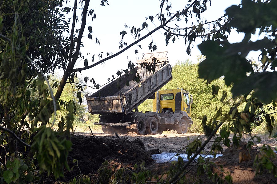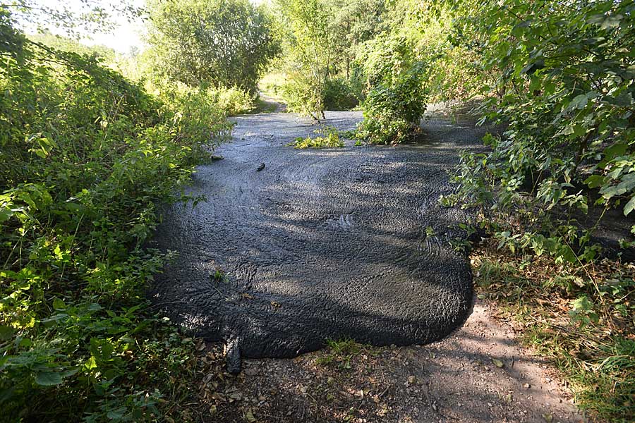 Jakby nie mogli wylać tego prawie przy samej tamie. Tam są takie „bagna” i ten szlam dobrze by tam pasował. Po drugie warto zaznaczyć, że to jest bogaty i żyzny materiał więc nie wiem czemu uznano, że wylewanie na drogę będzie najlepszym pomysłem.