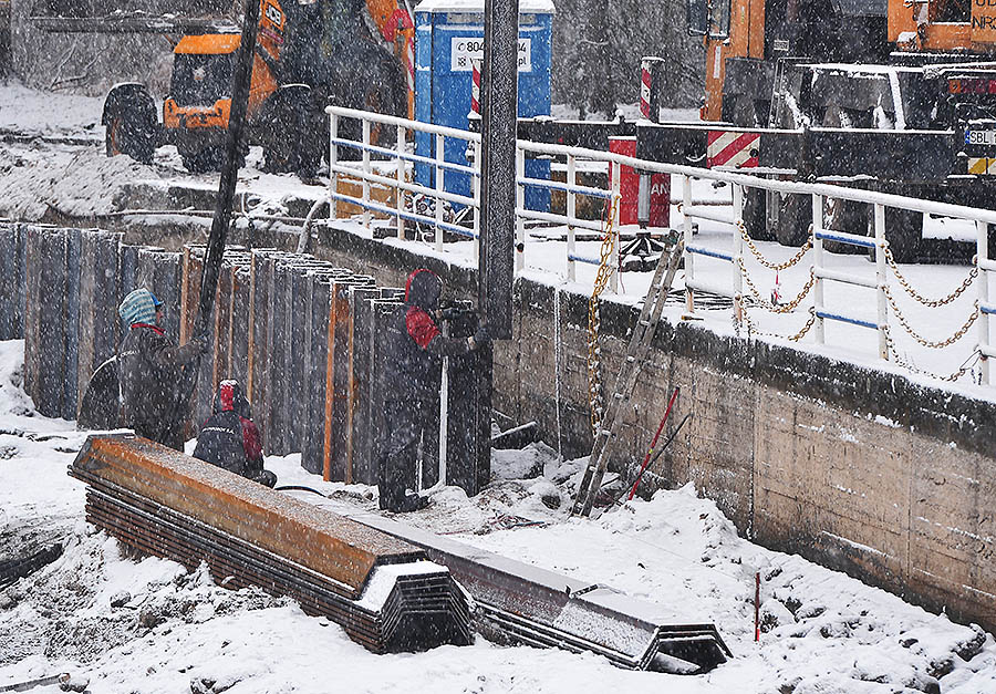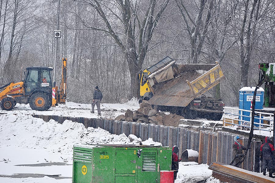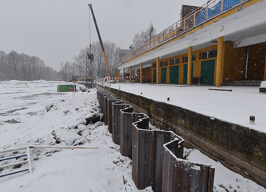 Kończy się wbijanie stalowych ścianek szczelnych dla umocnienia nabrzeża. Całość konstrukcji będzie miała długość 446 m. W okolicach restauracji „Turkus”, z powodu niejednorodnego gruntu, wbijane są głębiej niż na innych odcinkach (co trzecią z 8-metrowych grodzic zastąpiono 12-metrową). Korytowane jest też miejsce pod plażę – w planach jest jej poszerzenie.