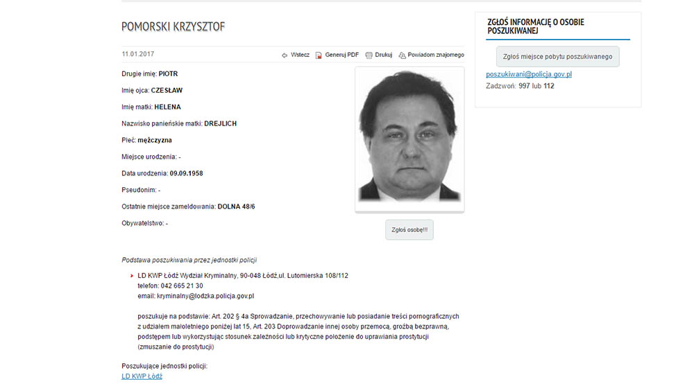 Ruszyła machina mająca na celu zatrzymanie Krzysztofa Pomorskiego, pabianiczanina podejrzanego o pedofilię.