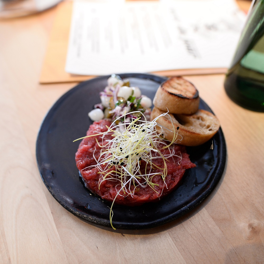 5. Tatar wołowy, Ogórek konserwowy, Kurka, Cebula