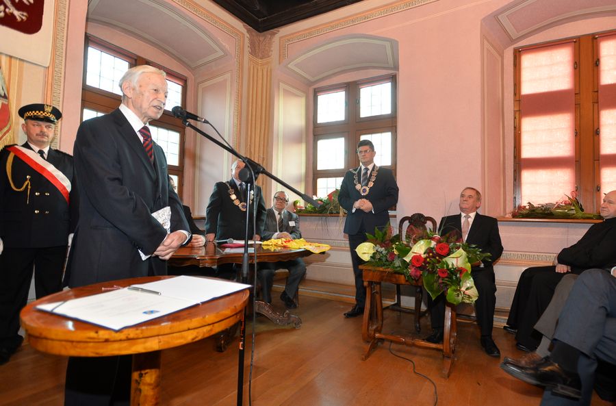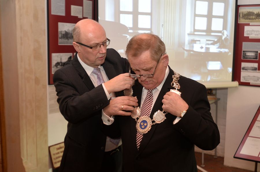 Ustępujący prezydent Zbigniew Dychto przekazał swojemu następcy symbol władzy, czyli prezydencki łańcuch oraz klucz do skrzynki, gdzie mieszkańcy wrzucali listy, prośby i skargi. Mackiewicz podziękował byłemu szefowi za ponad trzy lata wspólnej pracy po czym zapowiedział, że będzie prezydentem ponad podziałami.
