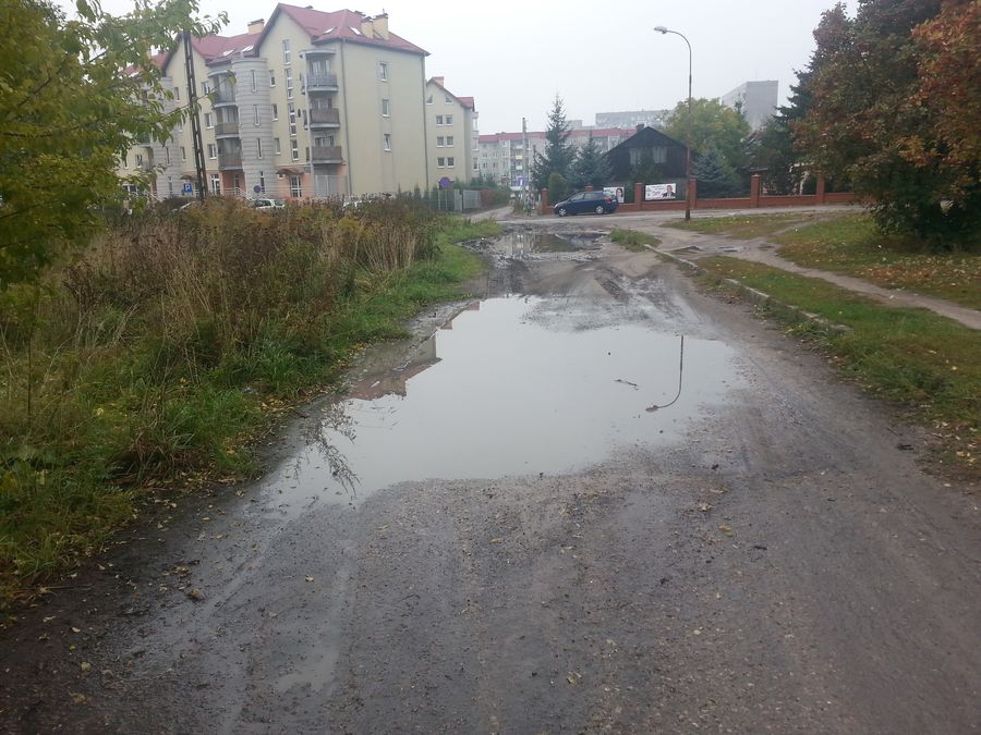 Szczególnie jej odcinka od ul. Dolnej. Na wysokości Małej 3F jest zaniedbany teren. To działka miejska – niechlujna, zachwaszczona, brudna i zarośnięta, na której porozrzucane są śmieci ze stojących obok kontenerów. Wzdłuż tej działki przebiega droga: nieutwardzona, z ogromnymi dziurami, w których podczas deszczu tworzą się gigantyczne kałuże. Okoliczni mieszkańcy mają spory problem, by przejść tędy nie grzęznąc w błocie.