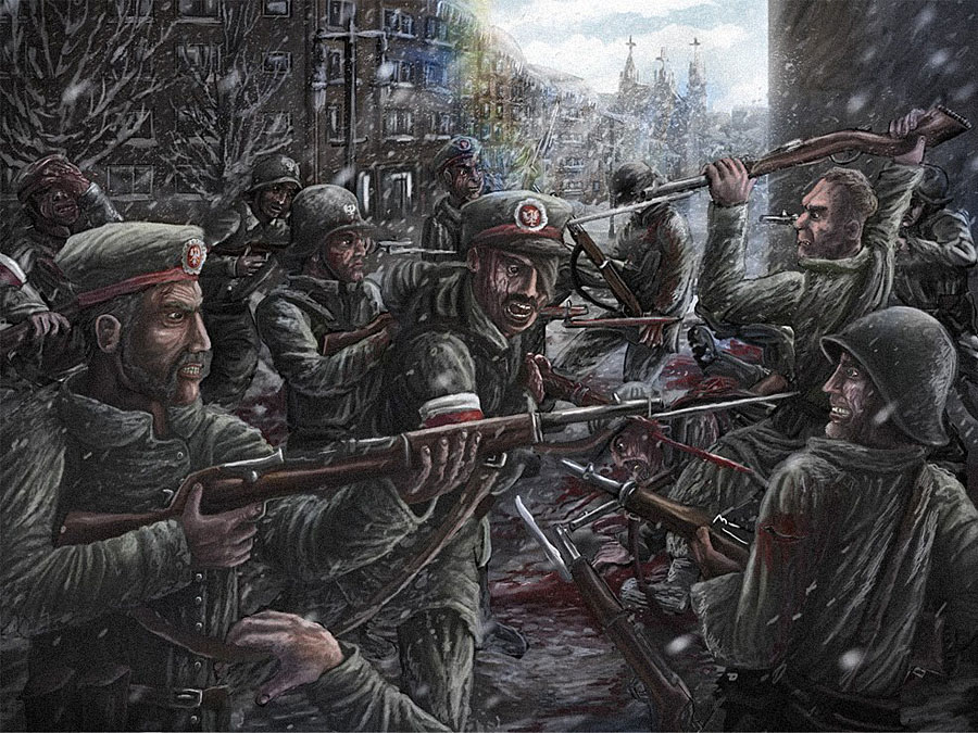 W zbiorach pabianiczanina są obrazy przedstawiające wydarzenia z wielu epok. Na jednym z nich możemy podziwiać Bitwę Pabianicką z 7 września 1939. O dworzec kolejowy walczyła 4. kompania porucznika Feliksa Kanclerza wspierająca pułk piechoty „Wilków”. Nasi żołnierze odpierali kilkukrotne natarcia niemieckich dywizji zmotoryzowanych i pancernych. W kolejnych kontratakach doszło do krwawych starć na bagnety a nawet pięści. Obrońcy Pabianic zostali ostatecznie rozbici w niemieckiej zasadzce po otrzymaniu rozkazu wycofania się do Łodzi, miasto zostało zdobyte przez Niemców 8 września. – W historii Polski jest wiele tematów godnych przypominania, prostowania i odkłamywania. Często chce przekazać fakty, o których mało kto dziś wie – tłumaczy rysownik. – Obrazy powstają raczej spontanicznie, ale lista do zrobienia jest jeszcze długa, a wręcz ciągle rośnie zamiast się skracać. Obrazy z epoki, zdjęcia archiwalne, opisy zdarzeń, opisy umundurowania czy uzbrojenia – to jest oczywiście równie ważne.