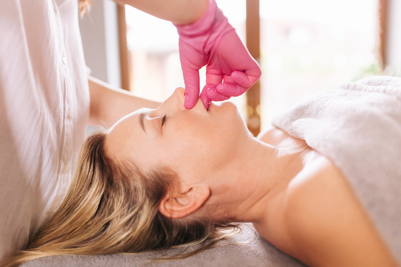 Masaż Transbukalny, czyli zabieg polegający na pracy z tkankami twarzy zarówno od strony wewnętrznej jamy ustnej, jak i zewnętrznej części policzków. Szczególnie rekomendowany jest osobom z silnym napięciem mięśni mimicznych, takich jak żwacz czy mięsień okrężny ust. Jak podkreśla terapeutka, dzięki tej technice może pomagać osobom zmagającym się m.in. z bruksizmem.