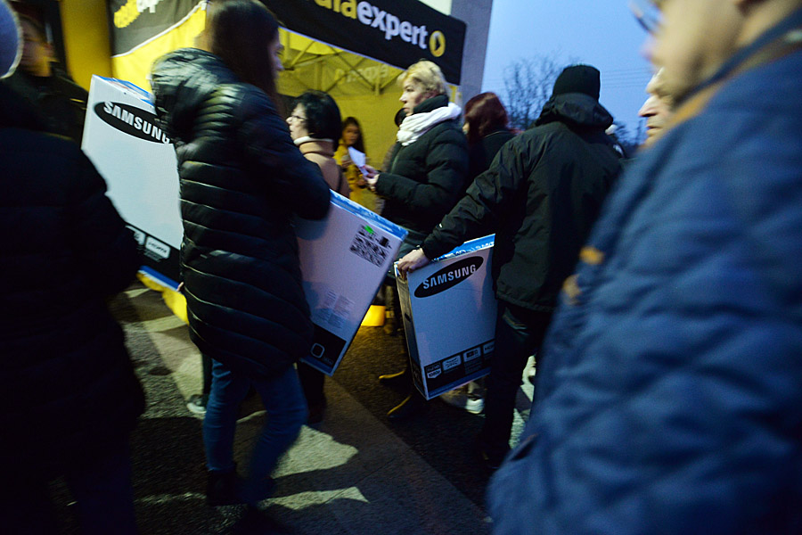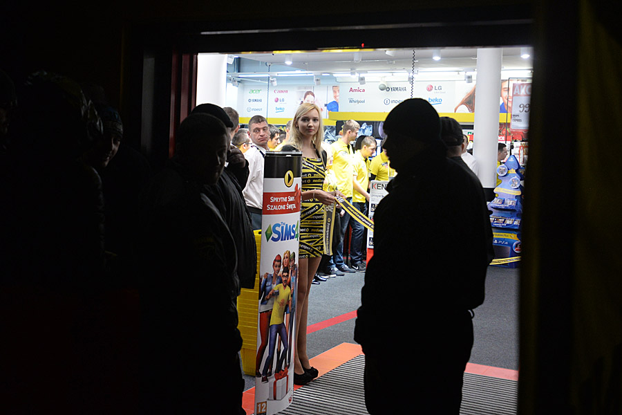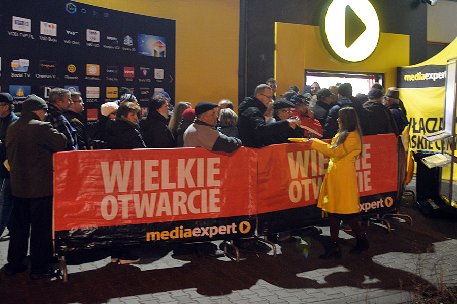 Uroczystego przecięcia wstęgi dokonała kierownik sklepu oraz pierwsza klientka – pani Sylwia, która po kilku minutach wyszła ze sklepu ze wspomnianym wyżej telewizorem. Nie obyło się bez lekkich przepychanek i utarczek słownych, ale ochrona panowała nad sytuacją. Promocje mają trwać aż do wigilii lub do wyczerpania asortymentu. Sklep znajduje się po drugiej stronie McDonald’s.