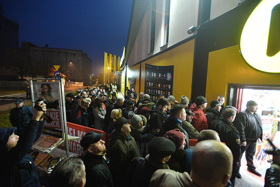 Pierwsi klienci stanęli przed drzwiami nowego marketu chwilę po godzinie 5.00. Otwarcie zostało zaplanowane na 7.00. Zanim ochrona zaczęła wpuszczać klientów, w kolejce stało ponad 200 osób. Hostessy częstowały ciepłą herbatą.