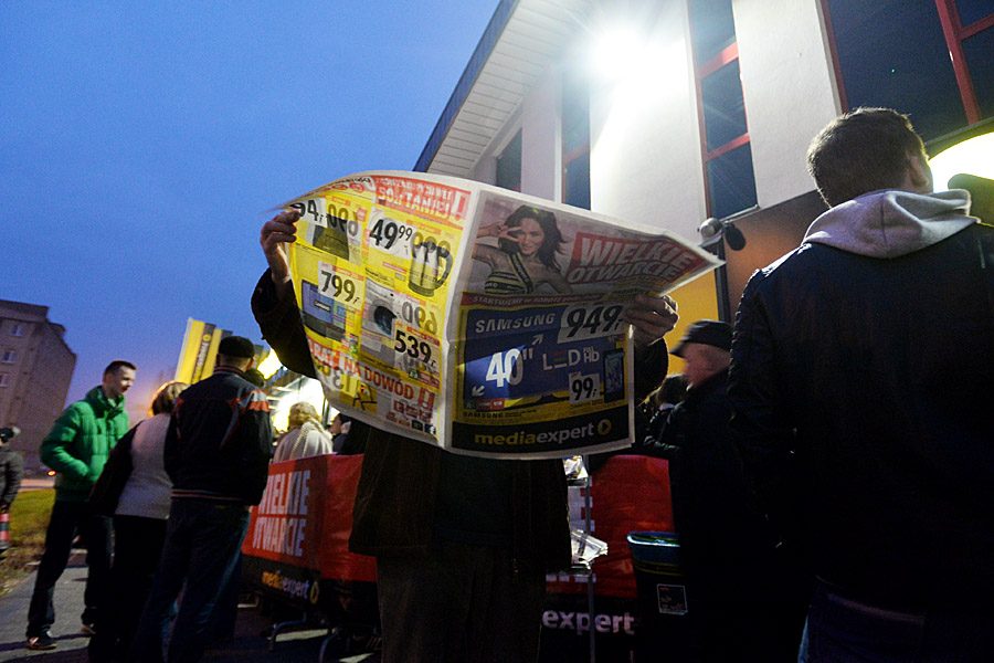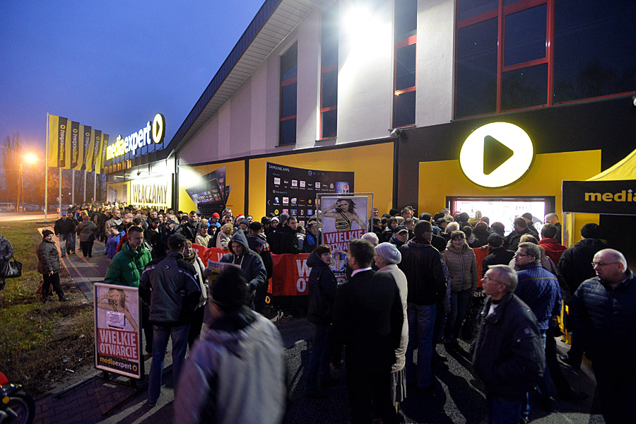 Wystarczyły dwie godziny w kolejce, żeby kupić mikrofalówkę za 74 złote lub 40-calowy telewizor za 949 złotych. Dziś w Pabianicach otwarty został elektromarket – Media Expert.