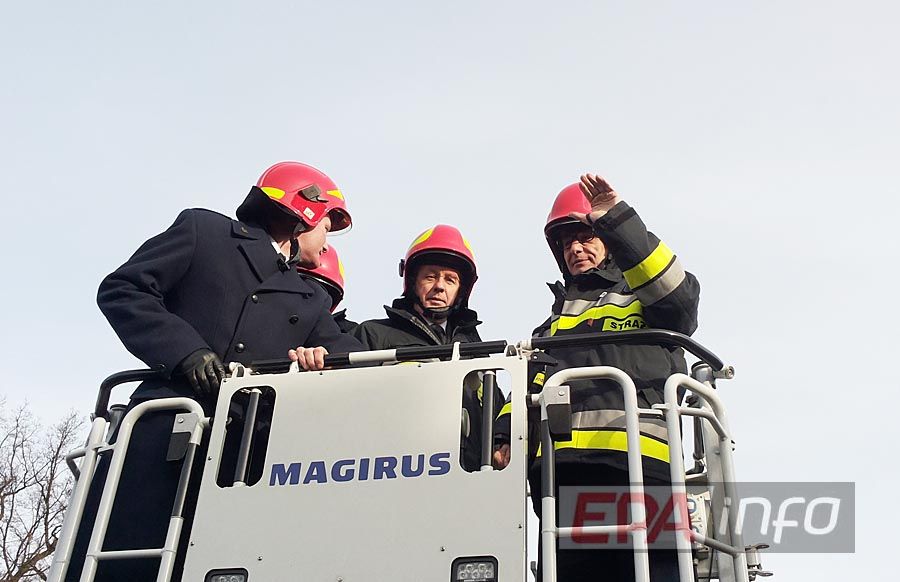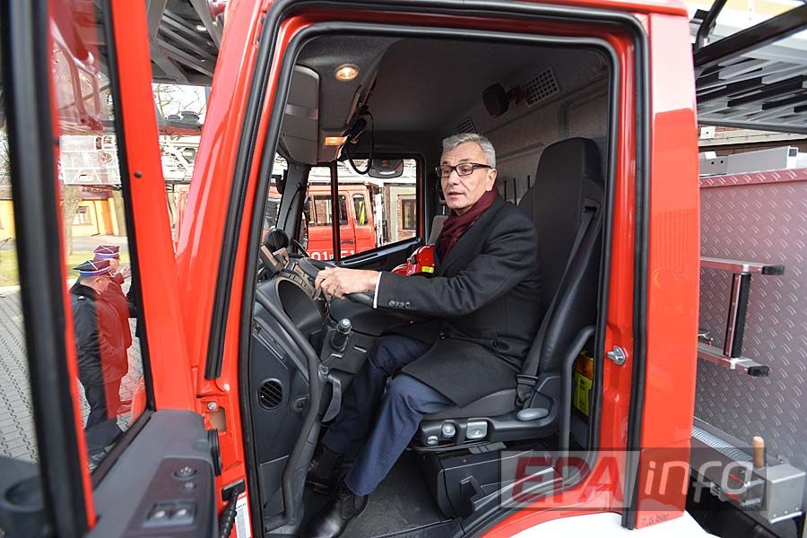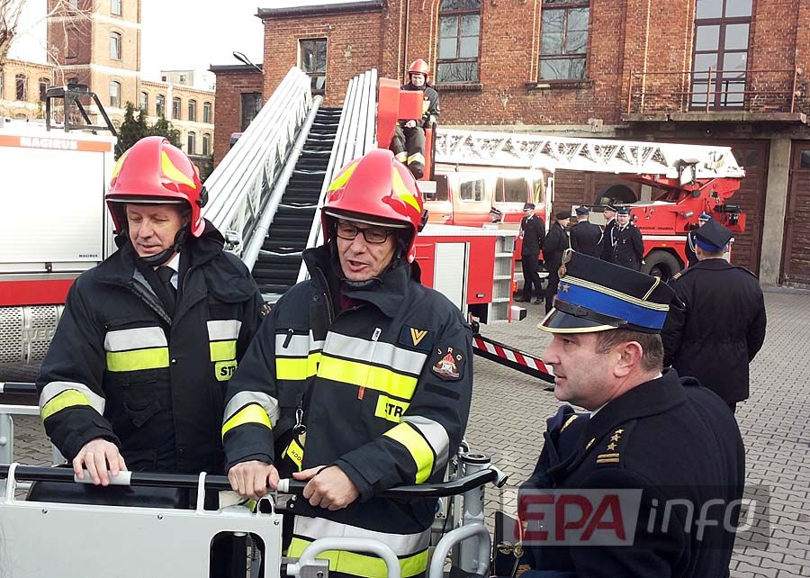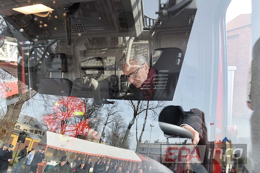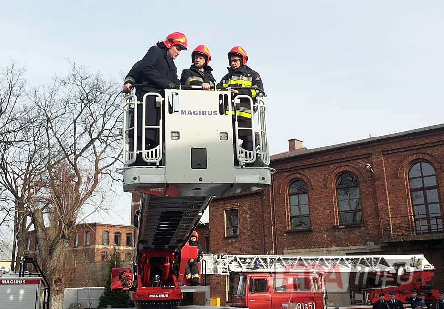 Jak podkreślił komendant, duży udział w zabiegach o pozyskanie pojazdu miał minister Andrzej Biernat, który oficjalnie przekazał kluczyki pabianickim strażakom. Minister osobiście sprawdził funkcjonalność pojazdu. Najpierw wsiadł do szoferki i odpalił auto, później przebrał się w strażacki strój i razem z generałem Wiesławem Leśniakiewiczem, komendantem głównym wszedł do kosza drabiny. Operator wysunął drabinę na wysokość kilkunastu metrów.