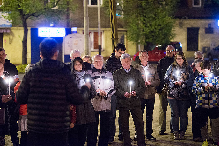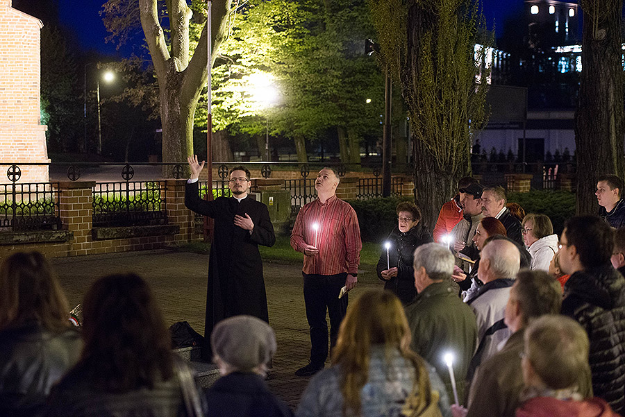 – Spotkania te przybierają formę nabożeństw majowych, które zgodnie z polska tradycją odprawiane są przy kapliczkach i krzyżach przydrożnych. 3 maja modlący przenieśli się ze Starego Rynku przed pomnik, aby odśpiewać Rotę i powierzyć Bogu sprawy Ojczyzny. Po nabożeństwie rozpoczęła się spowiedź w formie spaceru wokół kościoła, która trwała do północy. Jak na razie na nocne, dwudziestominutowe modlitwy przychodzi blisko 100 osób. Nabożeństwa te potrwają do końca maja – mówi ksiądz Michał Misiak z parafii św. Mateusza.