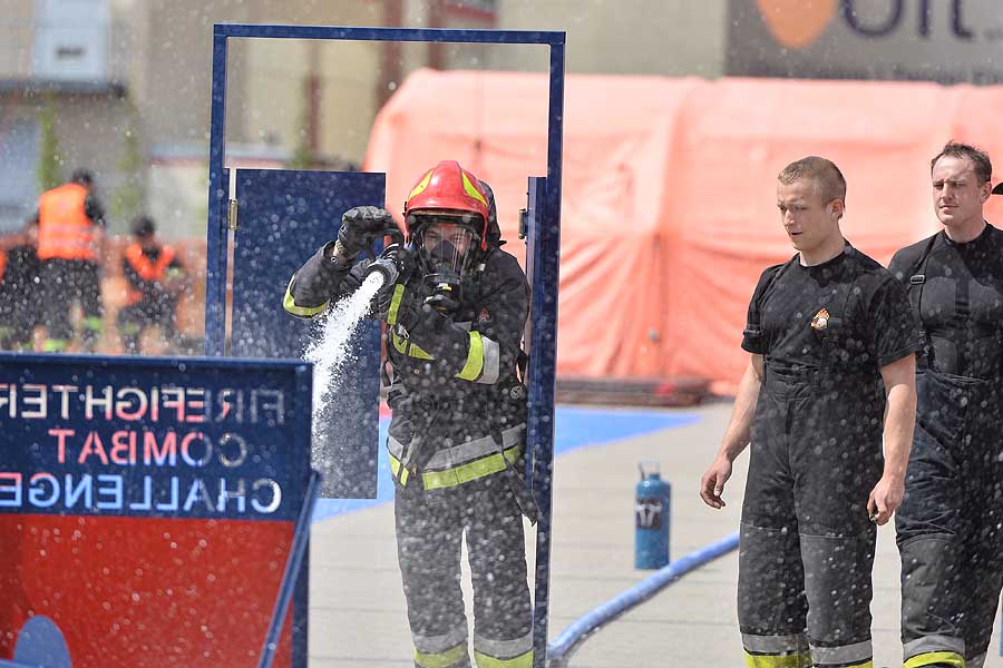 Zawodnicy pokonywali tor przeszkód wymyślony przez ich amerykańskich kolegów. Strażacy musieli w aparatach powietrznych wbiec na 3. piętro z ekwipunkiem ważącym 19 kilogramów, wciągnąć na górę worek o tej samej wadze za pomocą liny, zbiec na dół, rozbić młotem ścianę (symulacja na specjalnej maszynie), przebiec slalomem po wąż gaśniczy, trafić prądem wody w tarczę oraz przenieść 30 metrów ważącego 80 kilogramów manekina.