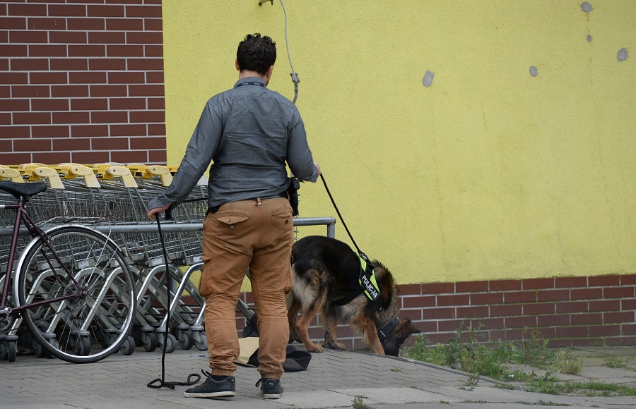 Po godz. 13.30 na ulicę Smugową przywieziony został pies tropiący.