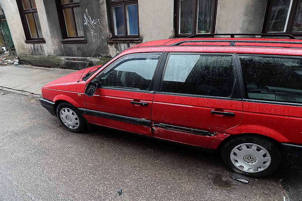 Kiedy wjechał w ul. Poprzeczną od strony Warszawskiej stracił panowanie nad pojazdem i uszkodził auta zaparkowane na chodniku. Uszkodzony został m.in. Volkswagen Passat.