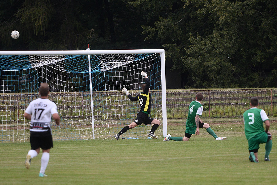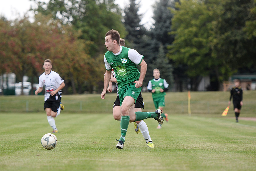 Od początku obie drużyny starały się uspokoić grę w środku pola. Od czasu do czasu, któryś z zespołów próbował ofensywnych wejść, lecz niewiele z tego wynikało. W połączeniu z bardzo drobiazgowym sędziom, który gwizdał wszystkie starcia, dostaliśmy bardzo nudną pierwszą połowę. Poza kilkoma próbami, żadna ze stron nie wypracowała sobie stuprocentowej sytuacji. Większość strzałów była blokowana i lądowała poza boiskiem. W naszej drużynie wyróżniał się jedynie Tomasz Ostalczyk. Dwoił się i troił, próbując zwodzić obronę gości. Jednak bez wsparcia kolegów niewiele mógł zdziałać. W ostatnich minutach pierwszej połowy Boruta mocniej przycisnęła, ale nie zagroziła bramce Rzeźniczaka. Później to „Zieloni” mieli szansę z rzutu wolnego, lecz strzał w środek bramki nie sprawił bramkarzowi problemów.