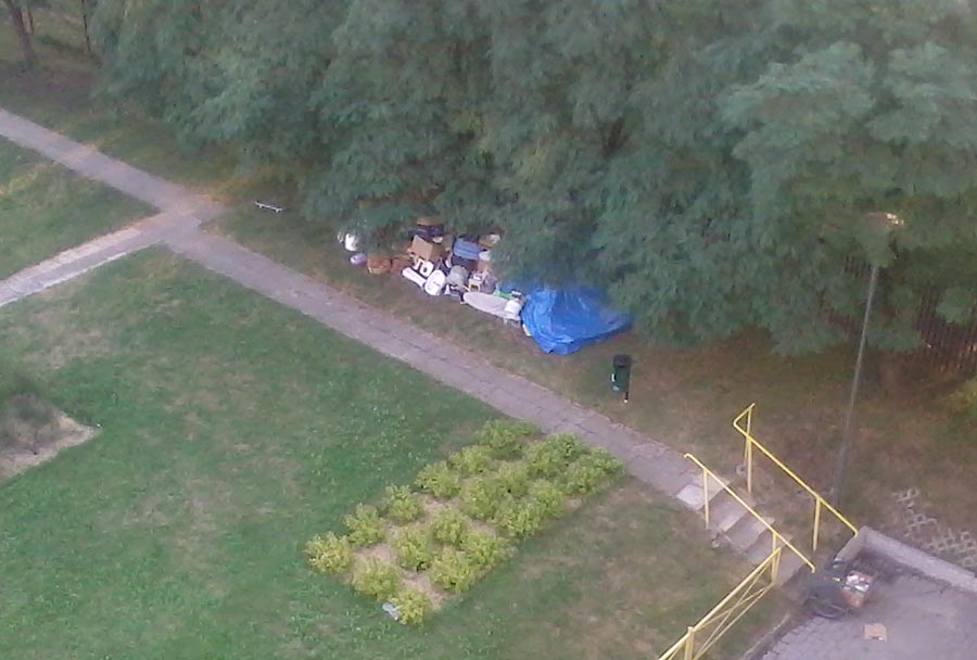 – Przyjechali strażnicy i powiedzieli, że w poniedziałek o sprawie dowie się prezydent. Ciekawe czy coś pomoże – zastanawia się bezdomny mężczyzna, który cały swój dobytek przeniósł na pobliski plac zabaw. – Kiedyś miasto zaproponowało nam mieszkanie 20-metrowe. Trochę małe, a mamy dorastającą córkę.