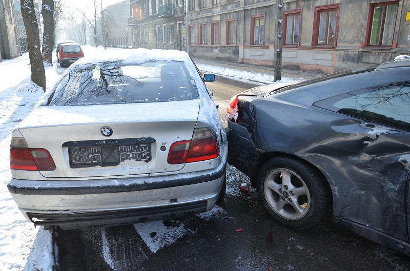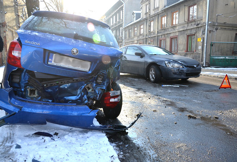 Kierujący Hondą Accord jechał ul. Traugutta, a następnie na zielonym świetle przejechał przez ul. Zamkową w stronę ul. Narutowicza. Na wysokości sklepu Małpka na chodniku stała zaparkowana srebrna Skoda Fabia. Nagle jej kierowca zaczął zjeżdżać na jezdnię. W tym momencie kierujący Hondą ominął Skodę i wpadł w poślizg. Przez około 70 metrów próbował wyjść z opresji, jednak na wysokości kawiarni Deja Vu jego samochód obróciło i całkowicie stracił nad nim panowanie. Uderzył w dwa zaparkowane pojazdy: niebieską Skodę Fabię i kremowe BMW.