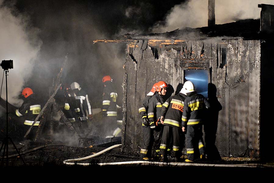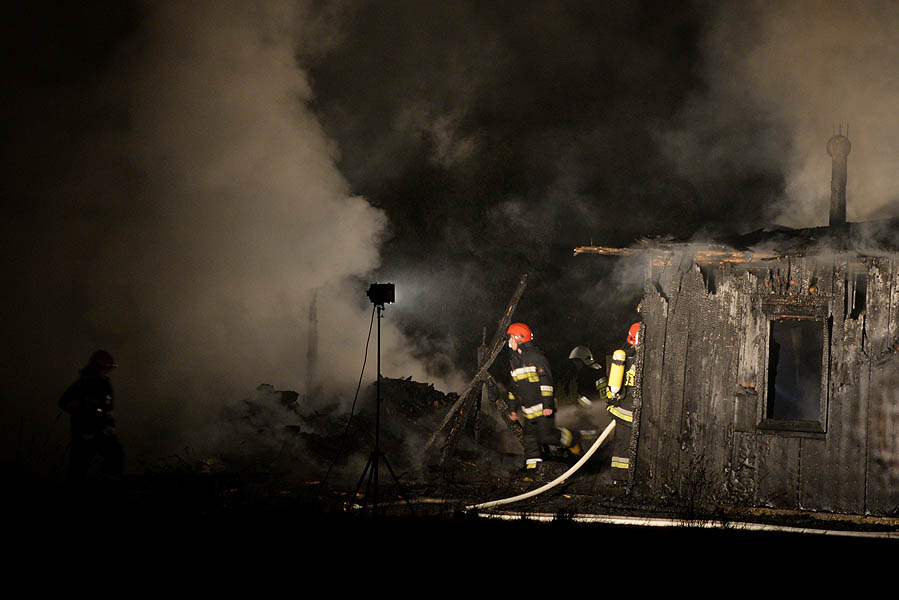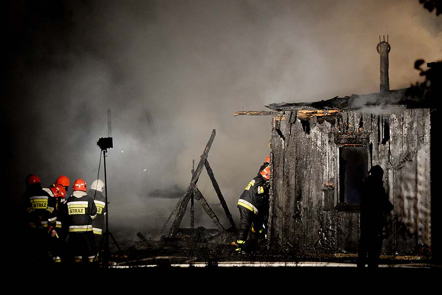 Tragiczny pożar drewnianego domu. W płomieniach zginął mężczyzna. Strażacy kilkadziesiąt minut sprawdzali czy nie ma innych ofiar.