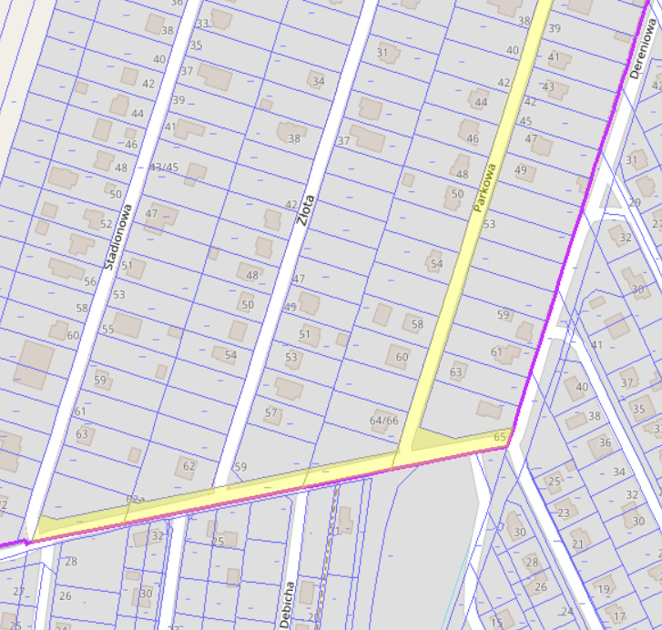 A kiedy gmina weźmie się za bezimienną drogę w Piątkowisku (na żółto, ale bez Parkowej, bo ktoś kreatywny tak wyznaczył działkę), co? Dojazd od Eichlera do ulic Parkowej, Złotej i Stadionowej to jest jakieś nieporozumienie!