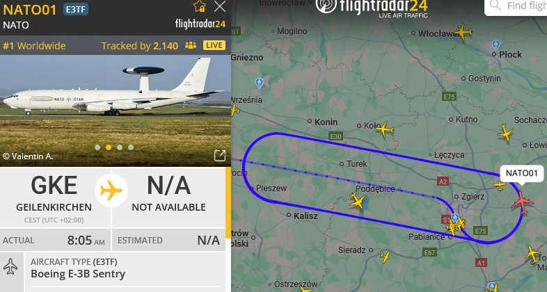 Może nie w temacie, ale dzisiaj nad Pabianicami krążył samolot AWACS (Airborne Warning And Control System) to powietrzny system wczesnego ostrzegania i kontroli, który składa się z samolotów wyposażonych w radary dalekiego zasięgu.