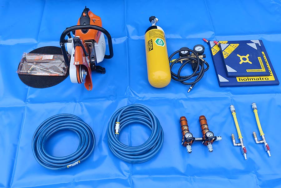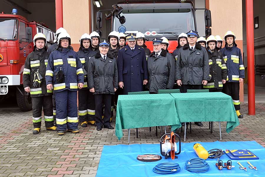 W tym tygodniu przekazana została przecinarka do betonu i stali oraz ratowniczy zestaw pneumatyczny. Wykorzystuje się go np. do podnoszenia pojazdów, pod którymi przygniecione są ofiary wypadków. Z tej okazji do strażnicy przy Jutrzkowickiej przyjechał komendant wojewódzki nadbrygadier Andrzej Witkowski z zastępcami.