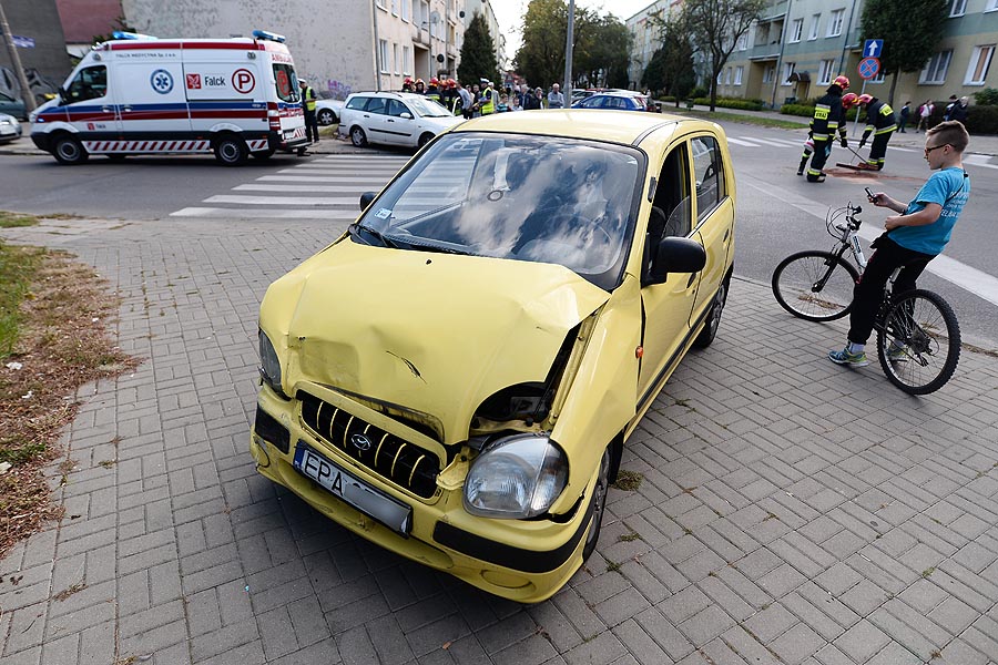 Do kolizji około godz. 15.30 na skrzyżowaniu ul. Wyszyńskiego i Skłodowskiej. Sprawczyni jechała Skłodowskiej od ul. Wyspiańskiego i nie zatrzymała się przed znakiem STOP. Na miejsce przyjechało pogotowie. Ratownicy przebadali 20-letnią kierująca Hyundaiem oraz pasażerkę. Kobiety nie wymagały hospitalizacji.