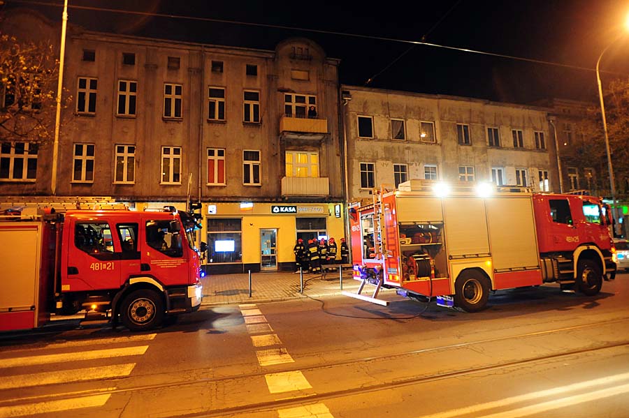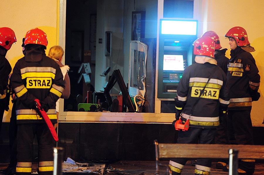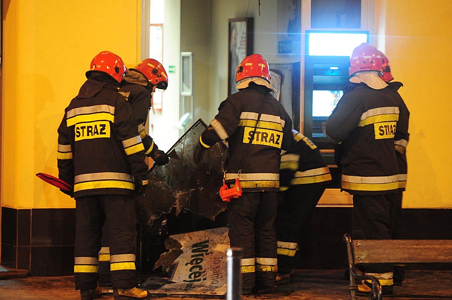 Pożar zauważył jeden z kierowców przejeżdżający ulicą Zamkową o godz 22:38. Zadzwonił pod numer alarmowy i po chwili na miejscu byli strażacy. Musieli wybić witrynę, żeby dostać się do środka. Przyczyną pożaru było zwarcie elektryczne w banerze reklamowym. Paliło się obok bankomatu. Na miejsce przyjechali pracownicy placówki i ochrona. Zniszczeniu uległa witryna sklepowa, baner reklamowy, podwieszany sufi. Opalona została również obudowa bankomatu. Straty to 5000 złotych. Szacowana wartość uratowanego mienia to 500 000 złotych.