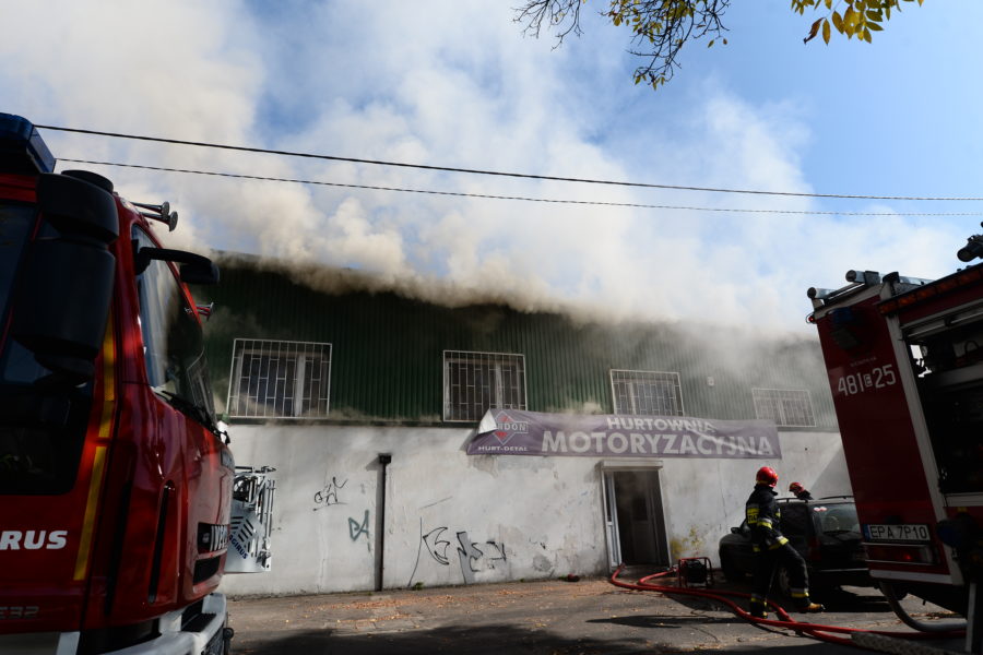 Zwarcie instalacji elektrycznej było przyczyną potężnego pożaru hurtowni motoryzacyjnej na Piaskach.