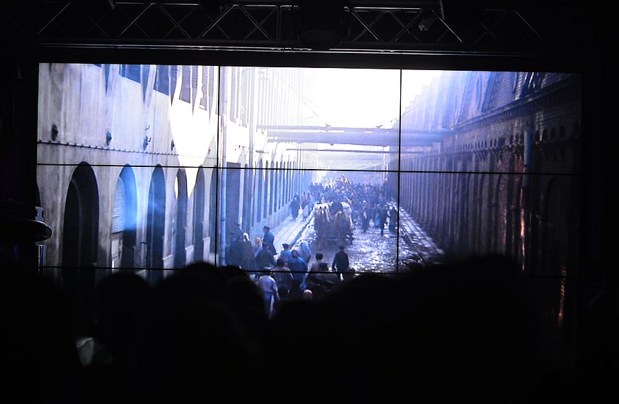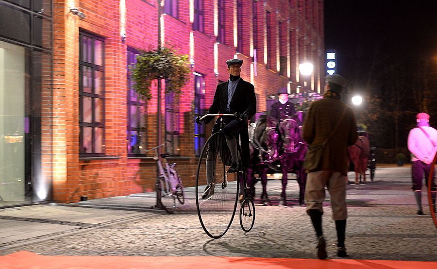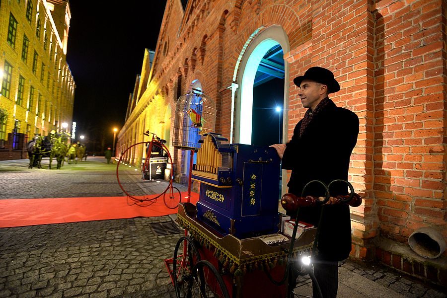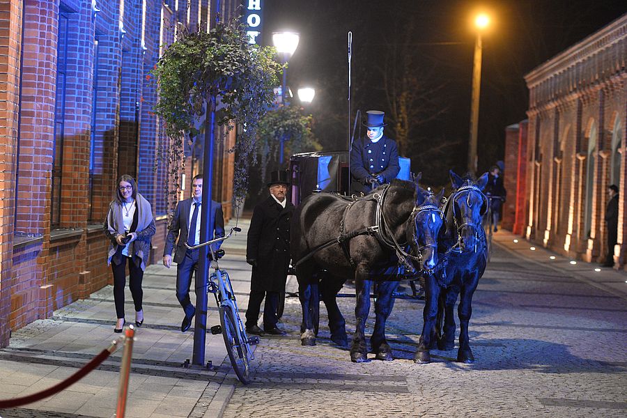 Po przemowie właściciela hotelu, wnuczkowie przecięli symboliczną wstęgę, a goście mogli obejrzeć fragment „Ziemi obiecanej”, w którym Daniel Olbrychski prowadzi ulicą pijanego Wojciecha Pszoniaka. Po tym na scenę wyszli bohaterowie filmu. – Tutaj były ruiny, straszne ruiny, a okazuje się może to wyglądać. Czyli dożyliśmy ziemi obiecanej w naszych czasach – powiedział filmowy Karol Borowiecki.