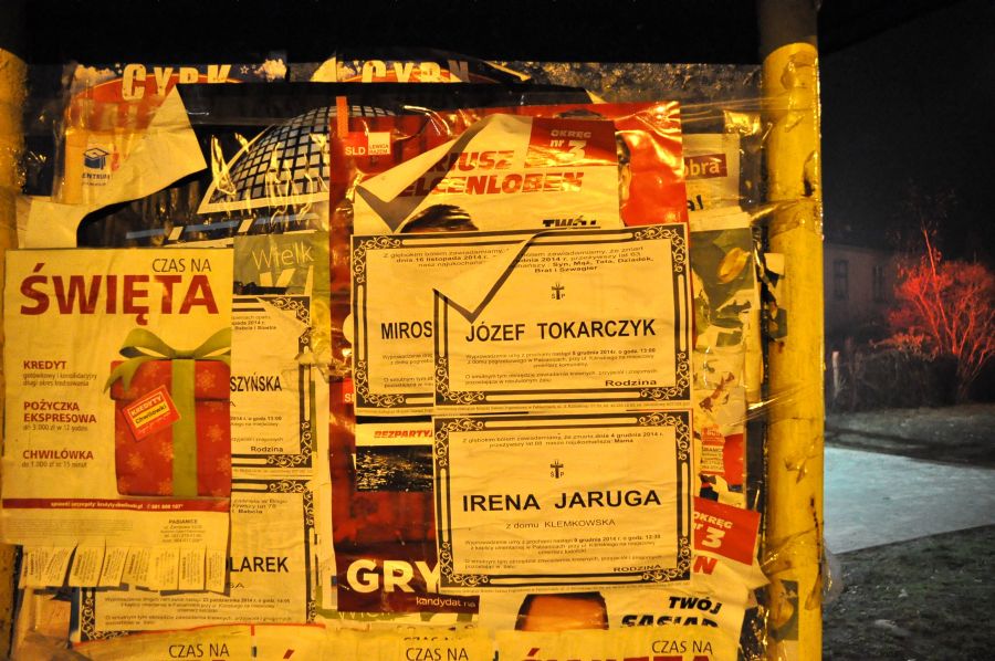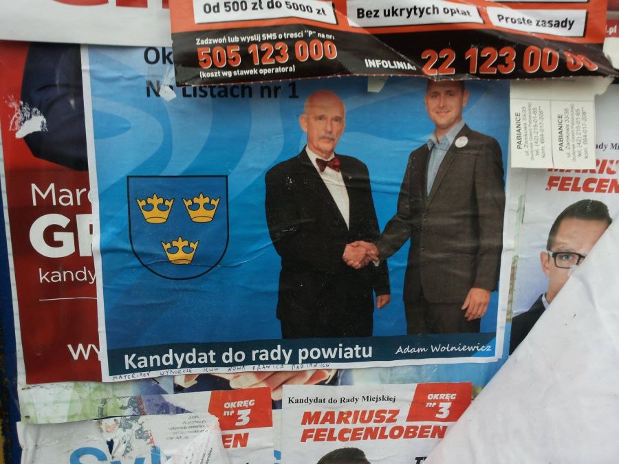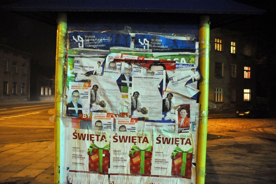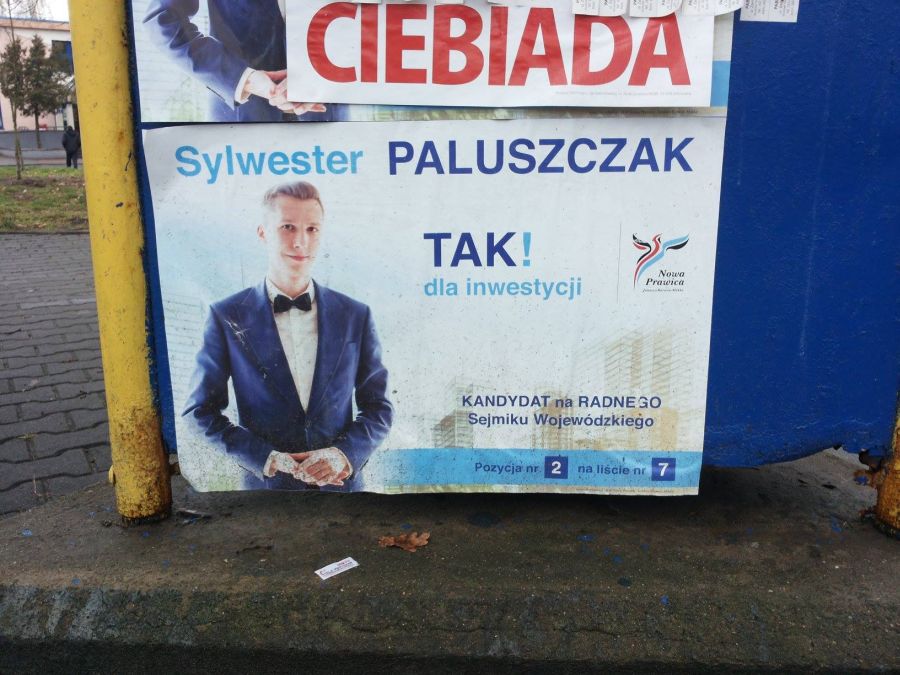 Wychodzi na to, że od wpadki nie uchronił się chyba żaden komitet wyborczy. Dzięki zgłoszeniu Kamila do listy dopisujemy słup ogłoszeniowy przy skrzyżowaniu ulic Rocha i Pułaskiego. Tam wciąż dostrzec można plakaty nie tylko wspominanych wcześniej Marka Gryglewskiego z SLD, Mariusza Felcenlobena z POPIS-u, ale także Marka Błocha z PiS oraz Adama Wolniewicza i Sylwestra Paluszczaka (obaj Kongres Nowej Prawicy).
