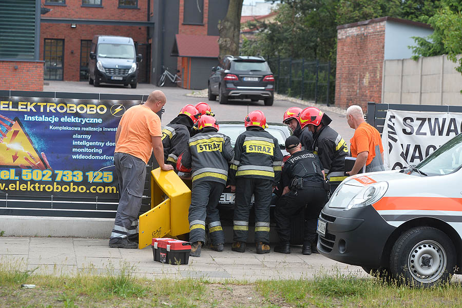 Około godz. 15.20 Opel zaparkowany na wzniesieniu (na terenie posesji) stoczył się, przebił ogrodzenie i staranował skrzynkę z licznikiem gazowym. Miejsce zdarzenia do przyjazdu pogotowia gazowego zabezpieczali strażacy i policjanci. Z uszkodzonej instalacji ulatniał się gaz.