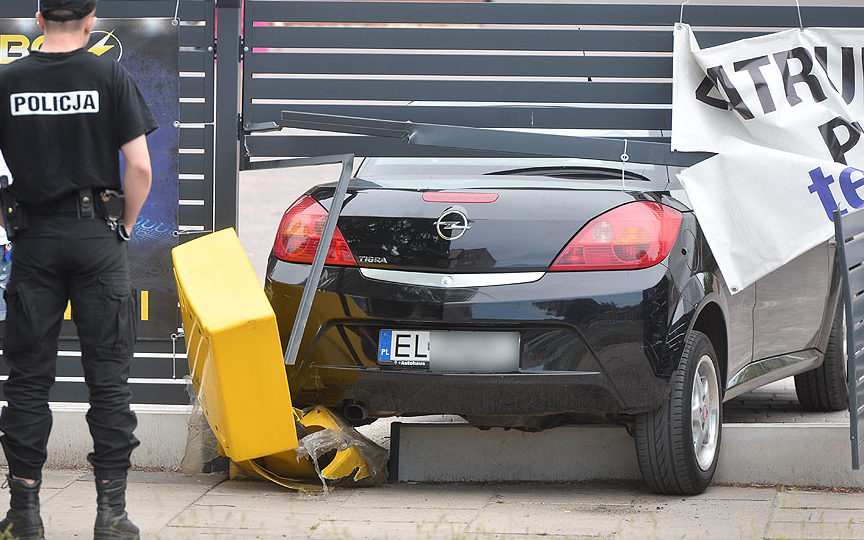 Strażacy zdemontowali przebite ogrodzenie i wepchnęli pojazd na parking.