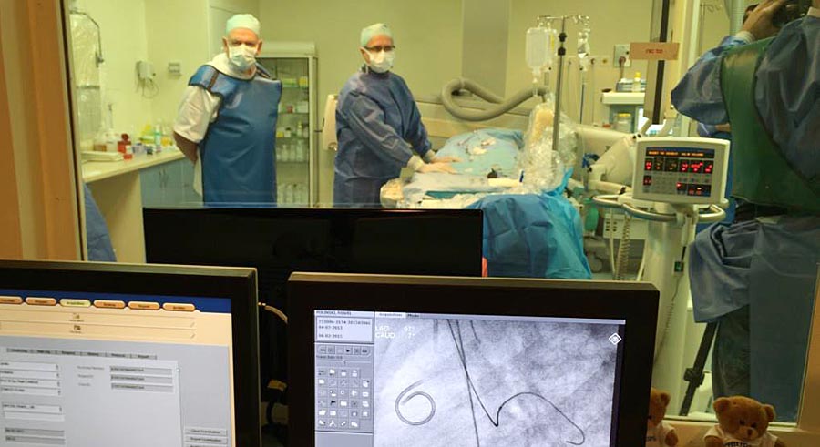 – Mimo tylu operacji nasza pacjentka wciąż miała kilka problemów. Przede wszystkim dziurę w sercu wielkości łba od gwoździa papiaka. Kardiochirurdzy zrobili ją specjalnie. Otwór był czymś w rodzaju wentyla bezpieczeństwa. Dzięki niemu po operacji można było uniknąć nadmiernego przeciążenia serca po naprawie. Dziurę trzeba było zatkać specjalną zatyczką. Poza nią była jeszcze zbyt wąska tętnica płucna – musieliśmy ją poszerzyć – mówił profesor Moszura dziennikarzom Gazety Wyborczej. – Po transmisji z naszej pracowni koledzy w Utrechcie oglądali zabiegi z Nowego Jorku, Toronto, a także ze szpitali w Korei i Izraelu.