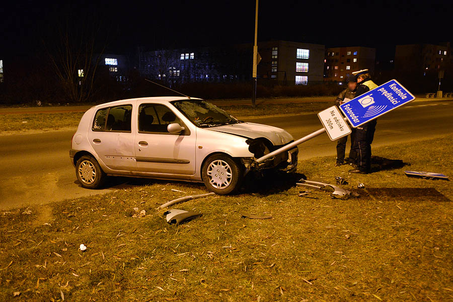 Kierowca Renault rozbił swój pojazd na dwóch znakach stojących przy ul. Grota Roweckiego.