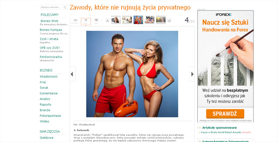 Krzysztof wziął udział w sesji zdjęciowej stylizowanej na serial „Słoneczny patrol”. Zdjęcia wrzucono do bazy agencji sprzedającej fotografie stockowe (ilustracyjne). Stamtąd jedno z nich trafiło do artykułu „Zawody, które nie rujnują życia prywatnego” opublikowanego w dziale „Biznes” portalu onet.pl. Choć zdjęcie wyświetla się jako czwarte w galerii, to jego miniatura trafiła na pierwszą stronę jako zapowiedź artykułu. Według statystyk portalu, na stronę główną Onetu każdego dnia wchodzi 3,5 miliona internautów.