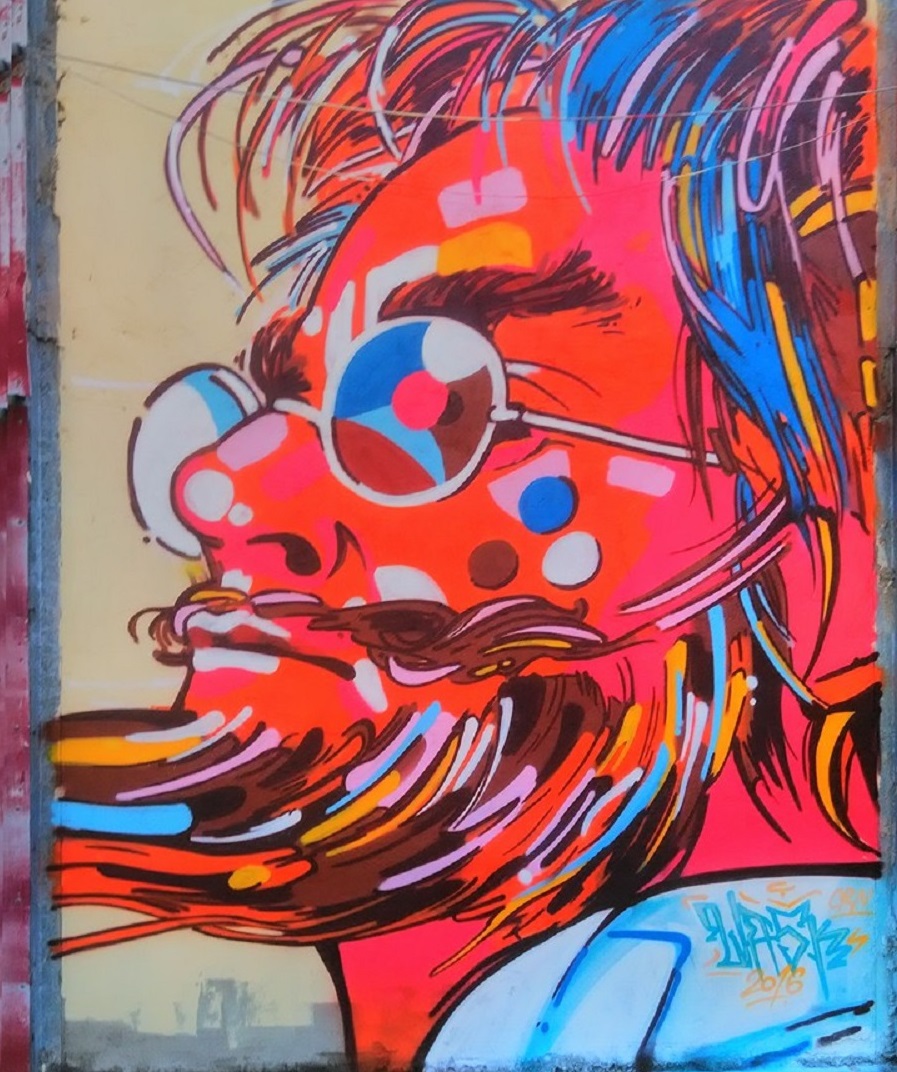 Podpisał się, bo to on namalował ten mural. I to miał być właśnie dokładnie TEN Pan Kleks z okładki kasety 🙂 na specjalne zamówienie.