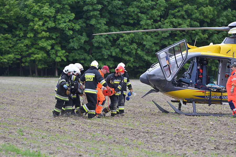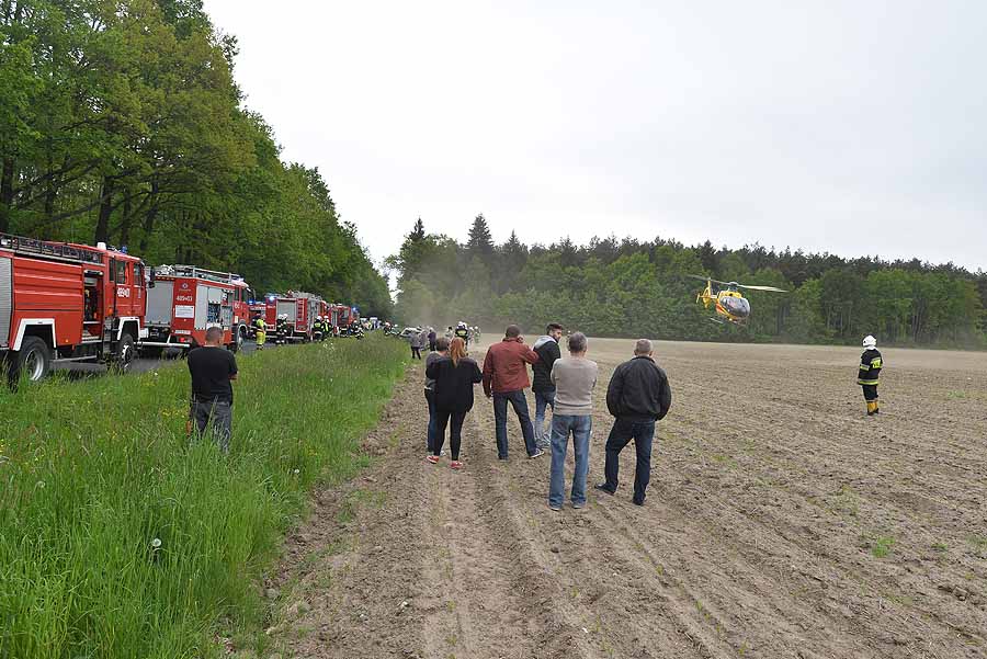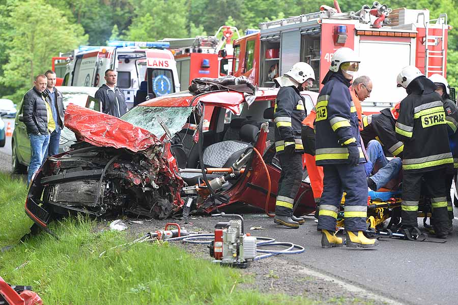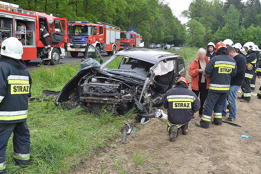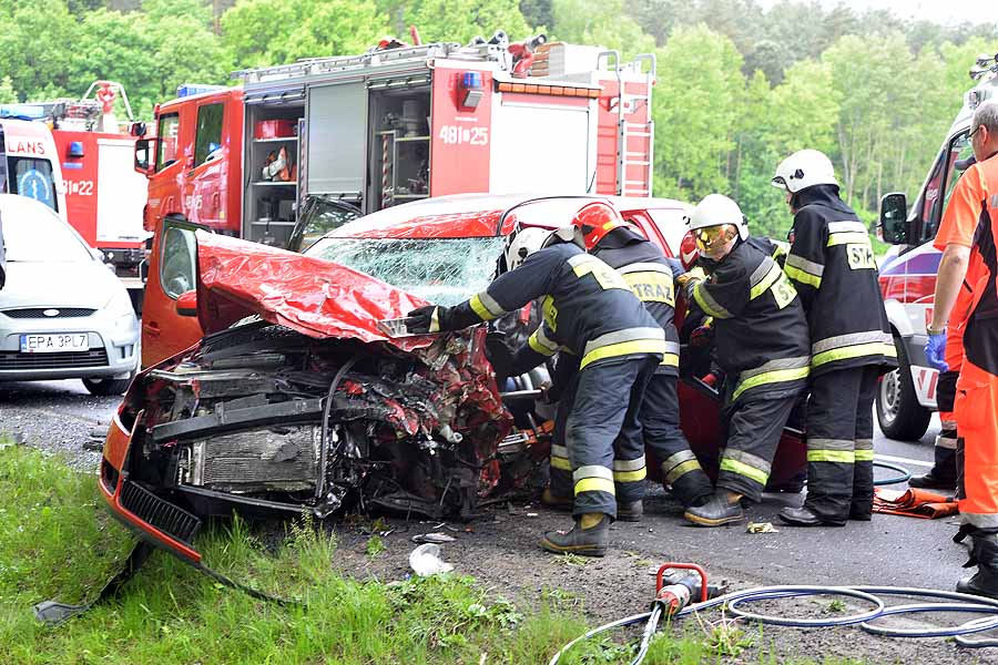 Pogotowie lotnicze zabrało jedną z poszkodowanych w wypadku pod Dłutowem. Strażacy blisko godzinę rozcinali pojazd by ją wydostać.