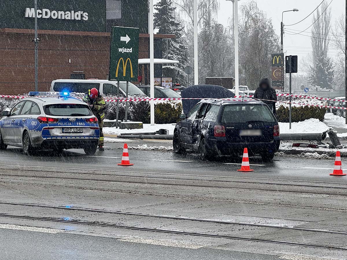 Po uderzeniu 53-letni kierujący passatem stracił panowanie nad autem i wjechał w latarnię. Konieczna była interwencja pogotowia energetycznego.