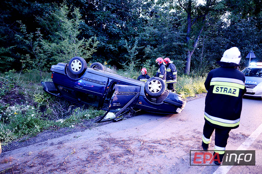 Do wypadku doszło w sobotę około godz. 20.00 na ulicy Guzewskiej w Gospodarzu. Stary Volkswagen Passat, którym podróżowały 4 pijane osoby pędził drogą od strony Guzewa. Na zakręcie (ok. 500 metrów od DK71) auto wpadło w poślizg. Niekontrolowany pojazd zmiótł z drogi około 30-letniego rowerzystę z Ksawerowa i dachował.