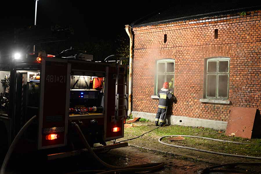 W środę po godz. 22.00 palił się opuszczony dom z cegły, gdzie koczują bezdomni. Dlatego na miejsce wezwano pogotowie ratunkowe, bo w środku mogli być poszkodowani ludzie. Strażacy dość szybko uporali się z pożarem i sprawdzili pomieszczenia. Nikogo nie było w budynku.