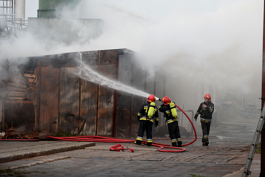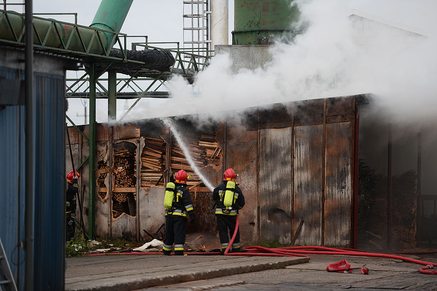 Kilka zastępów straży pożarnej gasiło magazyn z drewnem na ul. Słonecznikowej.