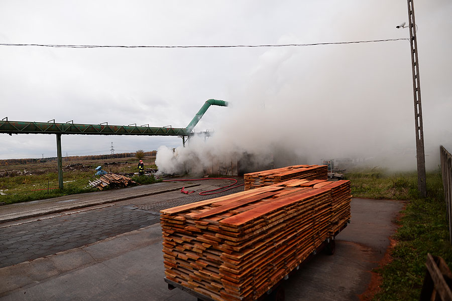Podczas pożaru zagrożone były: kotłowania z wyposażeniem i silos z trocinami. Z ogniem walczyło 8 zastępów straży (31 ratowników). Przyczyną było zaprószenie ognia podczas procesu produkcyjnego. Akcja trwała 3 godziny.