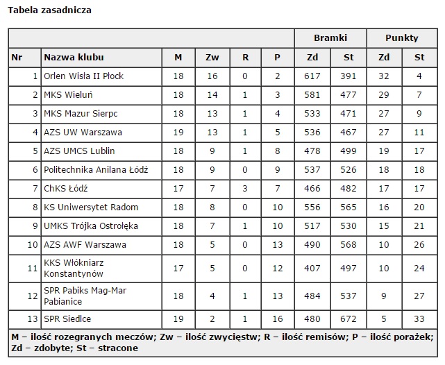 Tabela za Warszawsko – Mazowiecki Związek Piłki Ręcznej: