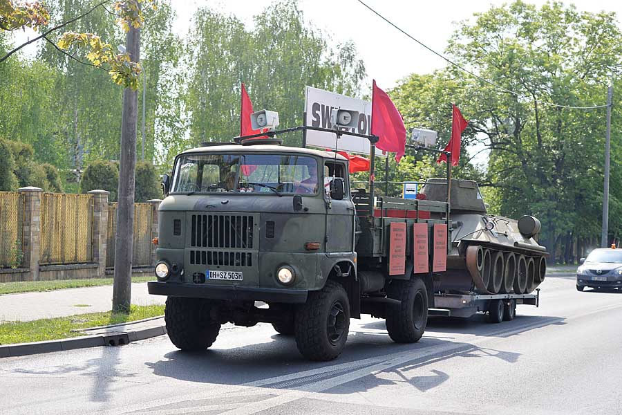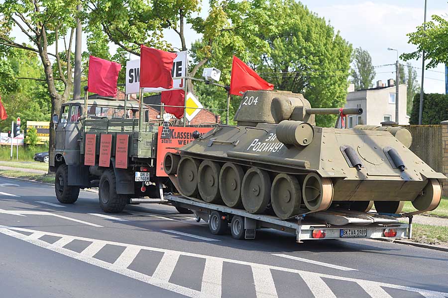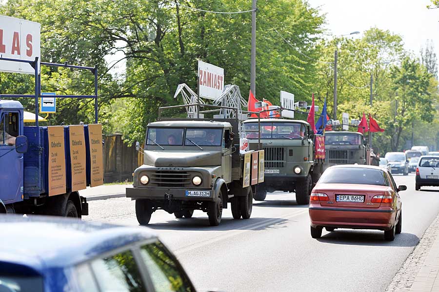 Kolumna zabytkowych aut wojskowych jechała z Częstochowy do Łodzi. Rajd odbywa się pod hasłem: „Klassenkampf statt Weltkrieg”, czyli „Walka klasowa zamiast wojny światowej”. Działacze lewicowi wyruszyli 8 maja z Berlina. 22 maja mają dojechać do Warszawy. Ich przejazd przez Polskę budzi sporo kontrowersji. Chodzi o propagowanie ustroju totalitarnego (w tym przypadku komunizmu) oraz stosowania symboliki związanej z tym ustrojem. Pojawiają się uwagi w sprawie używania przez Międzynarodową Akcję Antywojenną flag Związku Radzieckiego z symbolem „sierpa i młota”.