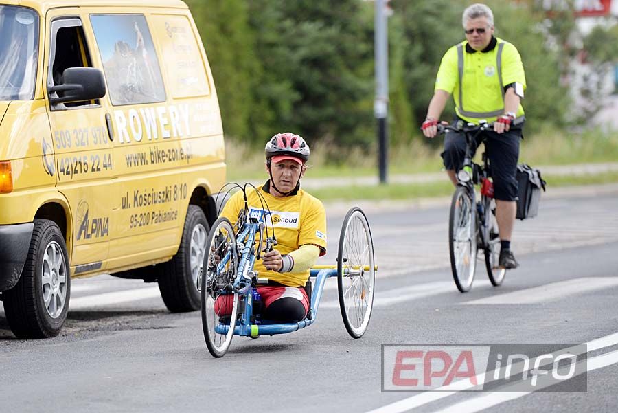 Dziś po godzinie 9.00 niepełnosprawny kolarz wystartował sprzed Pałacu Sportu w Łodzi. Chwilę po 10.00 minął Pabianice, żeby wieczorem zameldować się w Krakowie. We wtorek wsiądzie do kajaka i popłynie Wisłą do Gdańska. Jarzębskiego w wyprawie wspiera znajomy lekarz, firma Sunbud i serwis rowery Alpina z ul. Kościuszki.