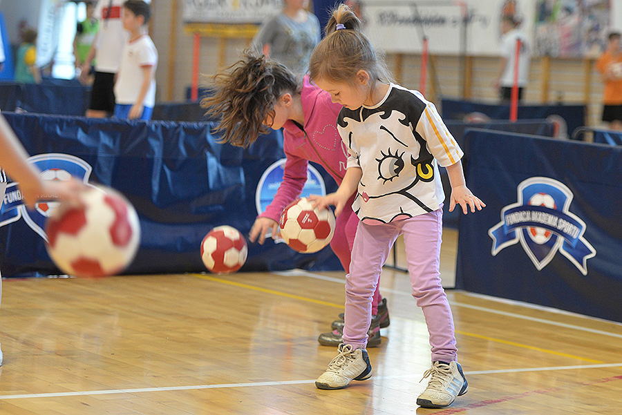 Uczestników podzielono na 8 grup zgodnie z wiekiem i płcią. Potem już w grupach pod przewodnictwem opiekunów, którymi byli zawodnicy seniorów Pabiksu przeprowadzono rozgrzewkę i można było przejść do samego treningu. Był to tzw. trening stacyjny podzielony na 5 stacji. Na czterech wykonywano różne ćwiczenia z piłką, a na jednym odbywała się „gierka” pomiędzy dwoma grupami na małym obszarze. Całość odbywała się w formie zabawy przy muzyce.
